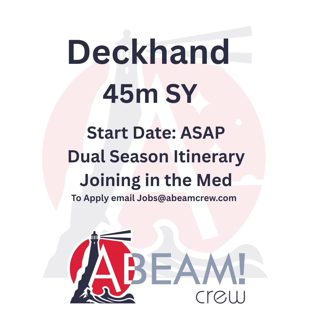 Abeam crew are recruiting for a deckhand for a 45m private Sailing yacht.